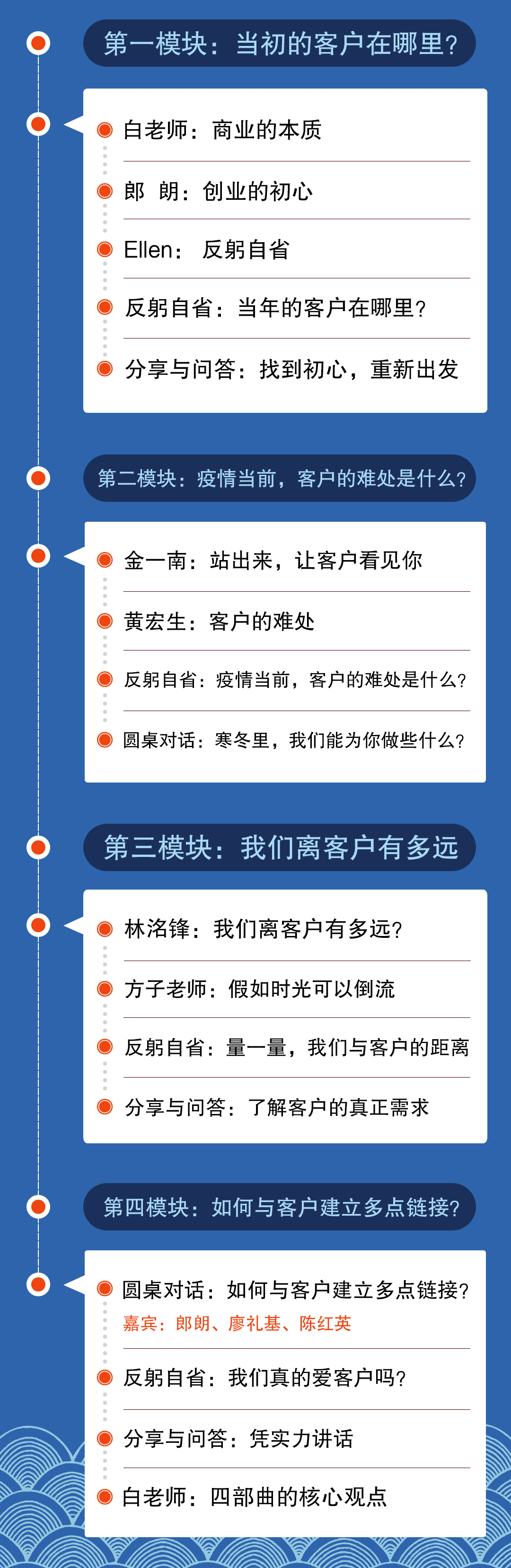 此次培訓課程主要涉及四個模塊:當初的客戶在哪里?疫情當前,客戶的難處是什么?我們離客戶有多遠?如何與客戶建立多點鏈接?